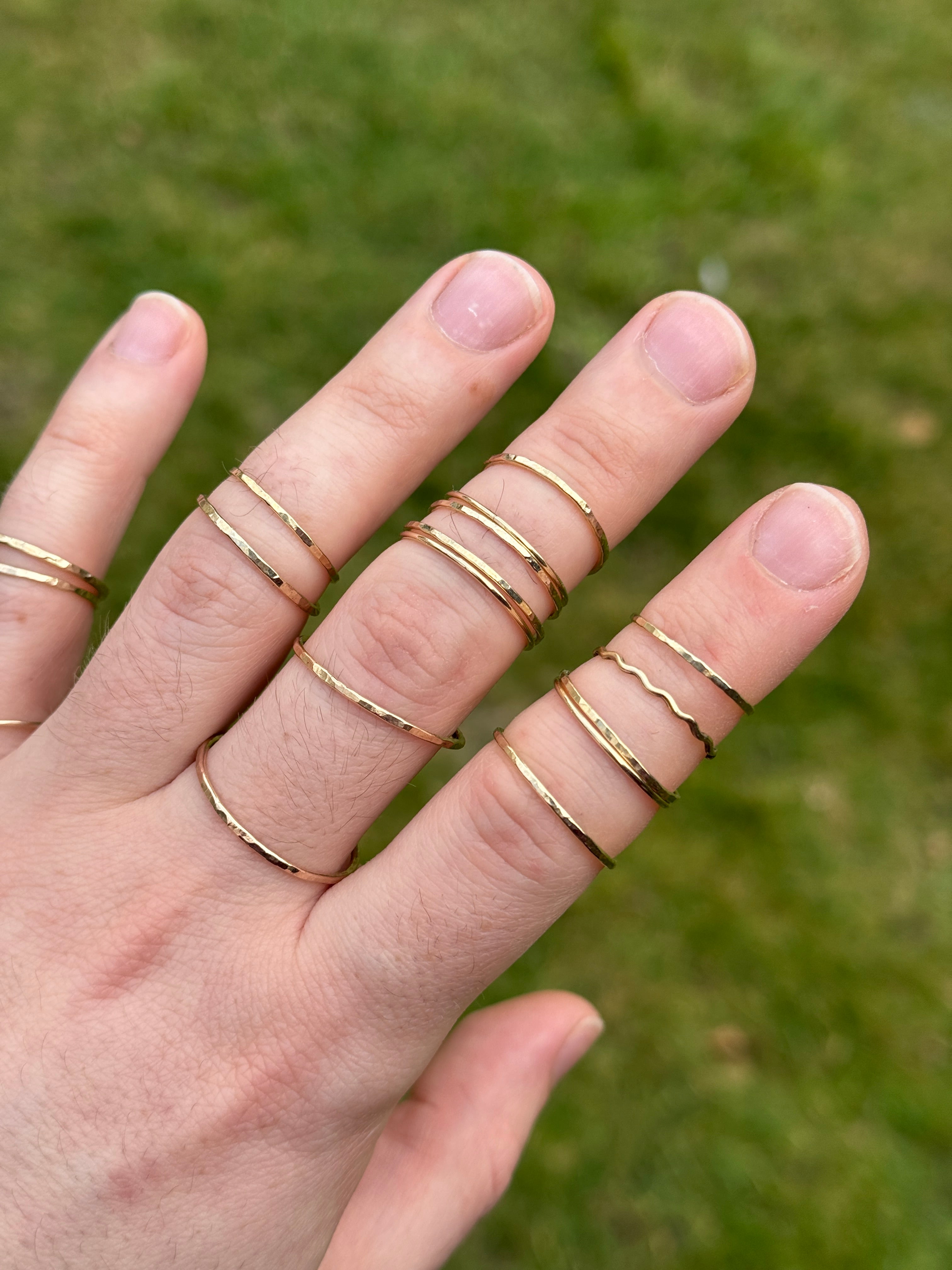 Solid Gold Ring Hammered Texture- 1.2mm Band - 9ct Gold