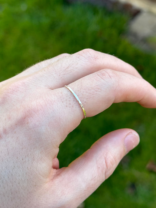 White Gold Ring Hammered Texture- 1.2mm Band - Solid 9ct White Gold