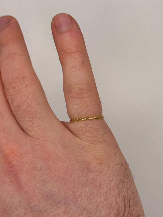 Solid Gold Ring - 1mm Wavy Band - 9ct Gold