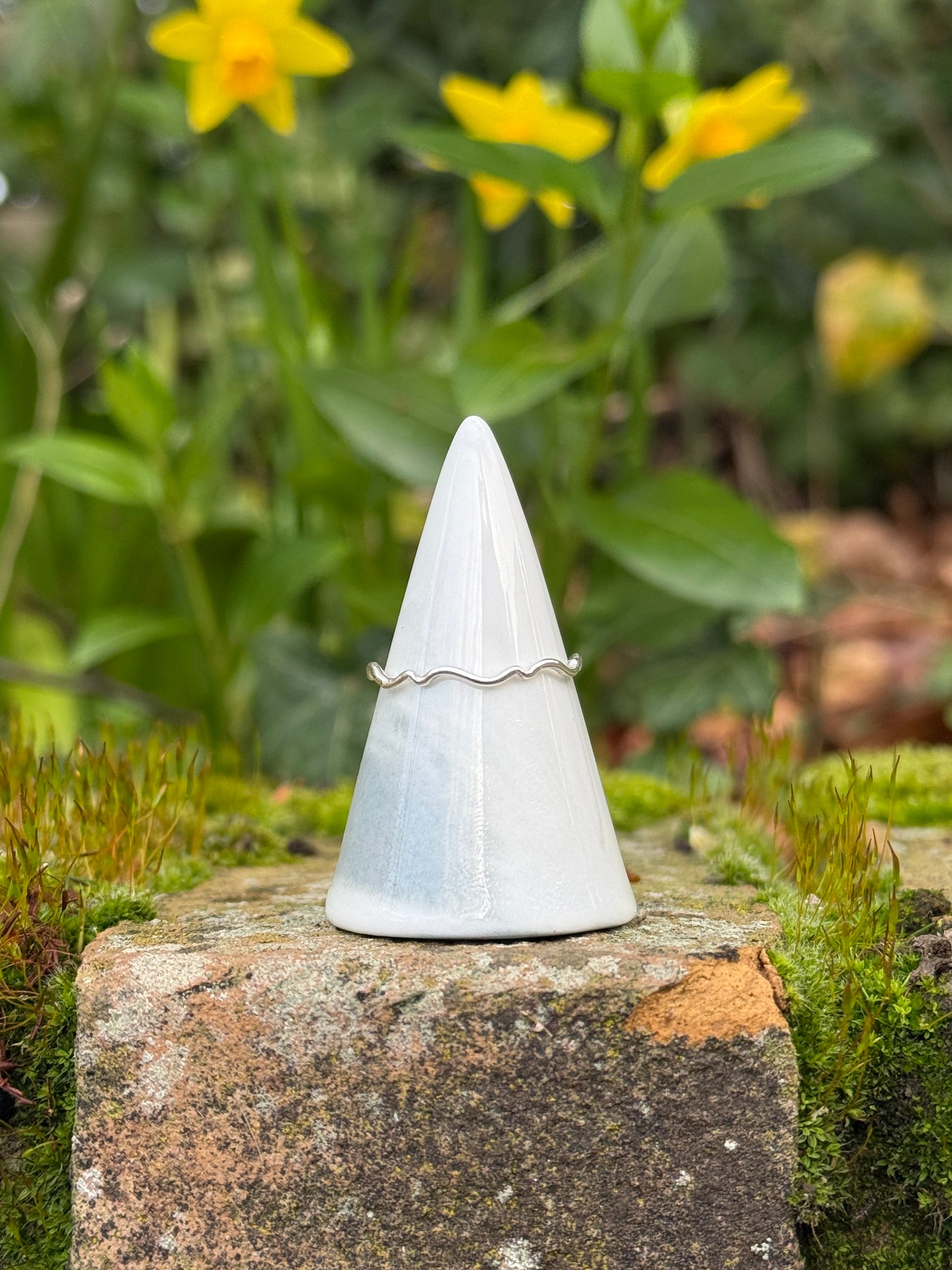 Elegant and dainty, this solid sterling silver ring has a distinct pattern that adds whimsy to any look.